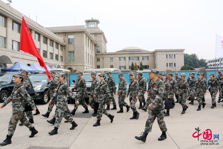 30 people from the 302 Military Hospital of the Chinese People's Liberation Army (PLA) leave Beijing for Sierra Leone via a special airplane on Sept. 16, 2014. (China.org.cn/Dai Xin)