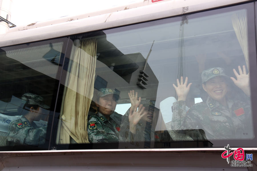 30 people from the 302 Military Hospital of the Chinese People's Liberation Army (PLA) leave Beijing for Sierra Leone via a special airplane on Sept. 16, 2014. (China.org.cn/Dai Xin)