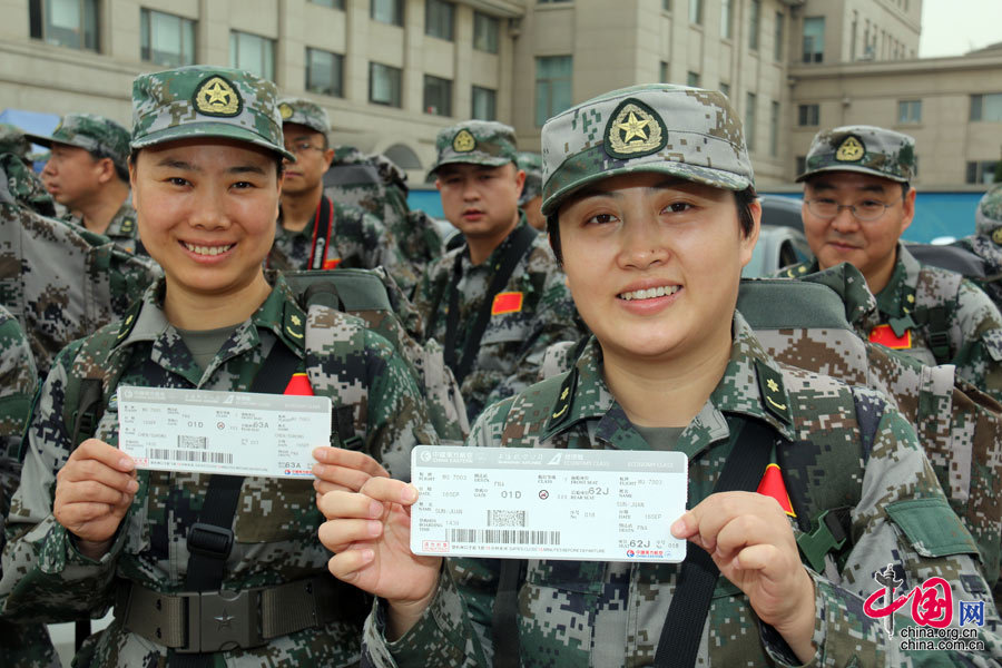 30 people from the 302 Military Hospital of the Chinese People's Liberation Army (PLA) leave Beijing for Sierra Leone via a special airplane on Sept. 16, 2014. (China.org.cn/Dai Xin)