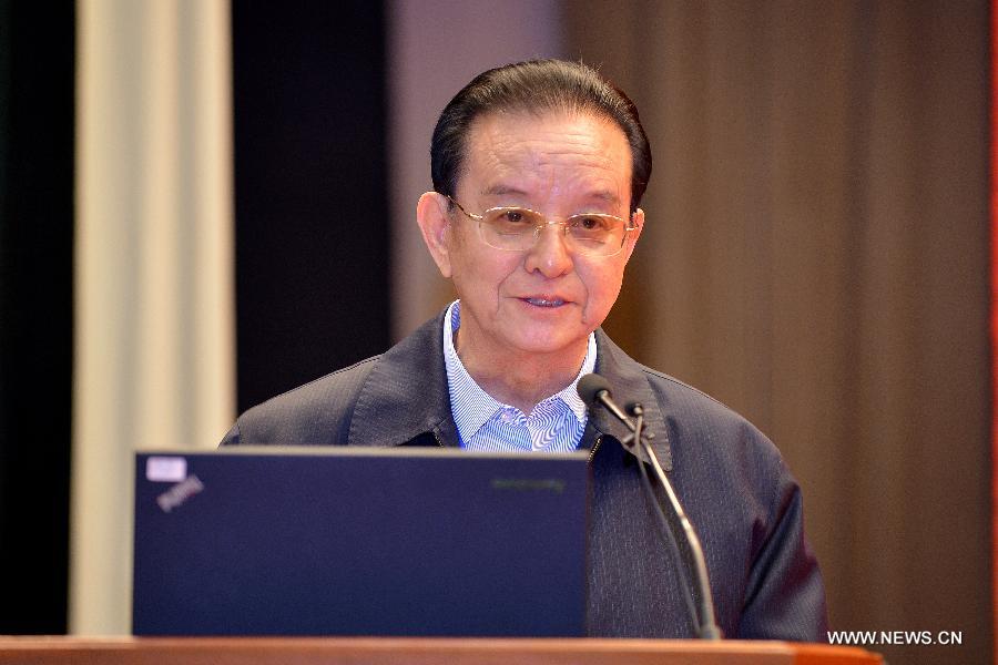 Li Guanxing, chairman of the board of directors of the Chinese Nuclear Society, speaks at a seminar commemorating the 50th anniversary of the success in the country's first atomic bomb, in Beijing, China, Sept. 18, 2014. (Xinhua/Li Xin)