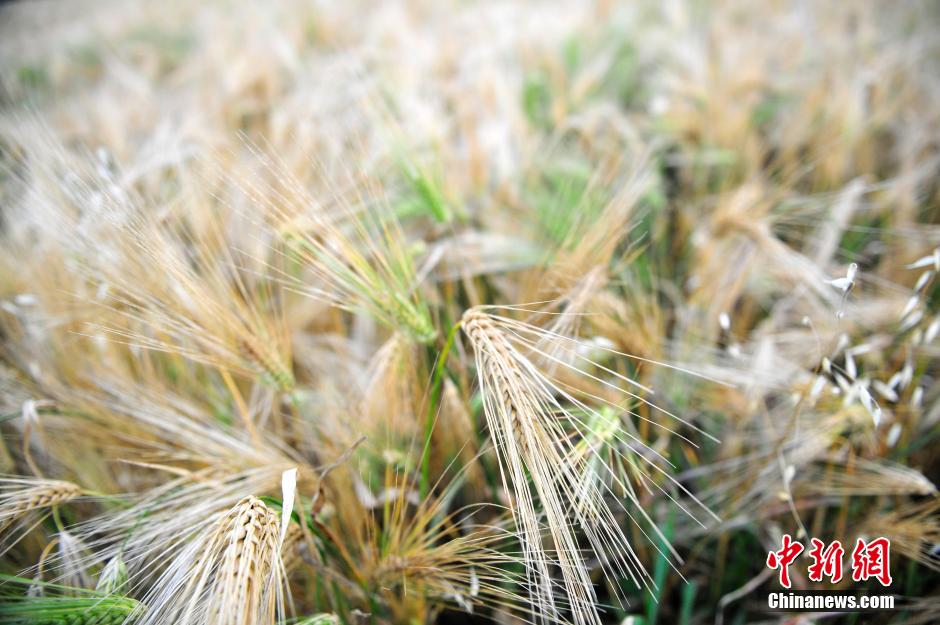 Highland barley harvest has begun in Tibet. In Lhasa and Shigatse, farmers are busy harvesting the highland barley in lands covered with golden ears of barley. (Chinanews.com/Tang Zhaoyang)