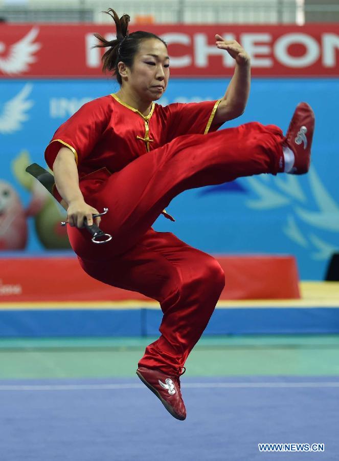 Kojima Erika of Japan performs during the women's nandao of Wushu competition at the 17th Asian Games in Incheon, South Korea, Sept. 20, 2014. (Xinhua/Xie Haining)
