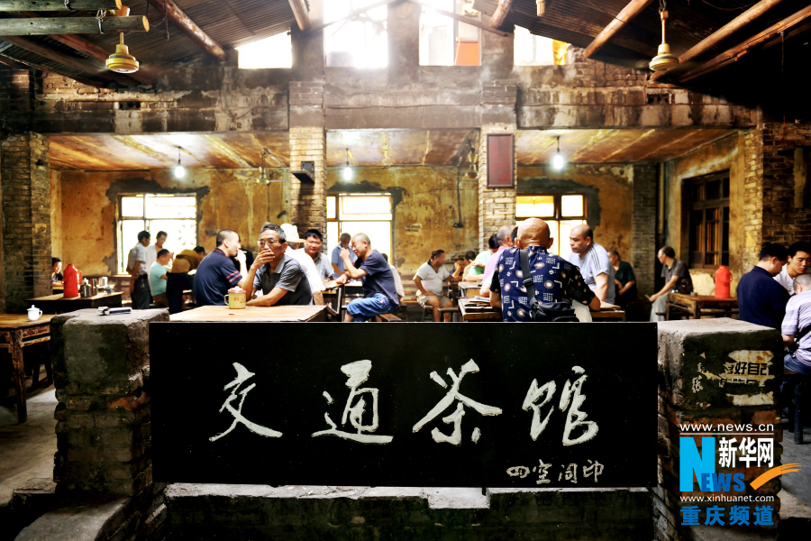 | Tea drinkers kill the time by playing chess, playing cards and chatting with their friends at Transportation Teahouse, Aug. 11, 2014. (Xinhua News Agency/Li Xiangbo) |