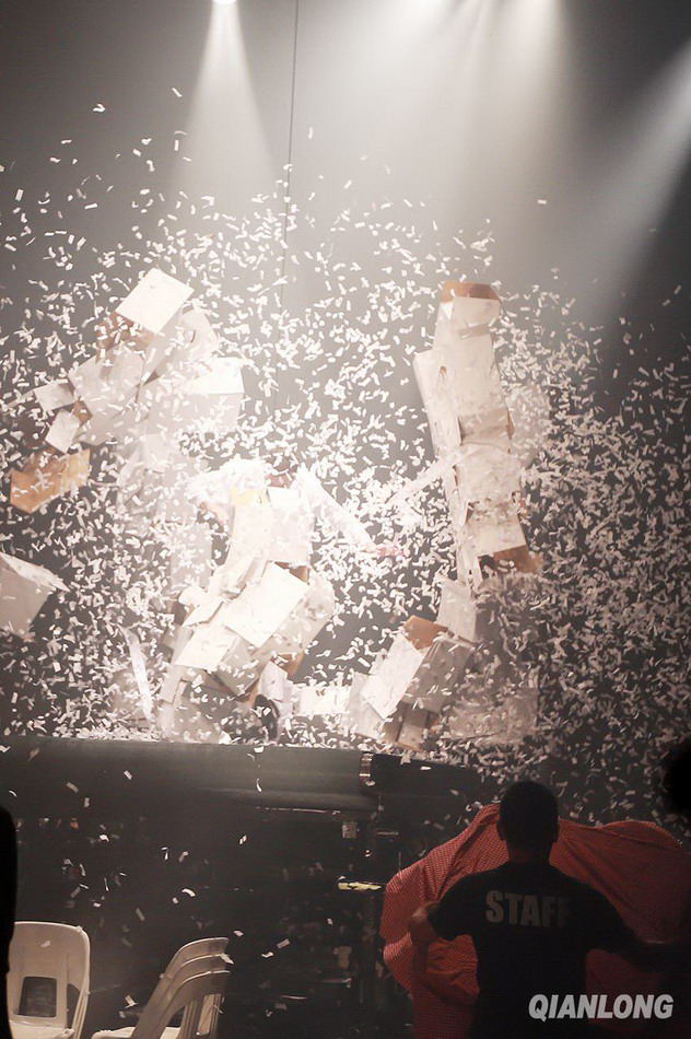 The actors on the treadmill attacked by the carton (qianlong.com/Qi Lianmin)