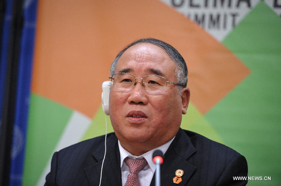 Xie Zhenhua, deputy director of China's National Development and Reform Commission, speaks during a press conference at the UN headquarters in New York, on Sept. 23, 2014. China pins high hopes on a new global climate change pact to be reached late next year, said Xie Zhenhua here Tuesday. (Xinhua/Niu Xiaolei)