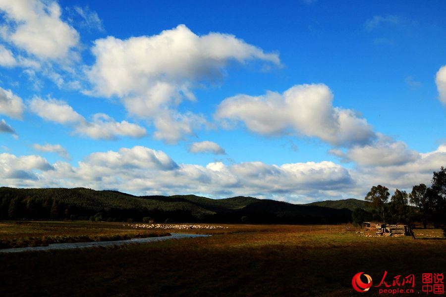 Located in Arun Banner, northeastern Inner Mongolia, Kulungou is full of scenic beauty with herds of cattle and flocks of sheep. (Photo/People's Daily Online)