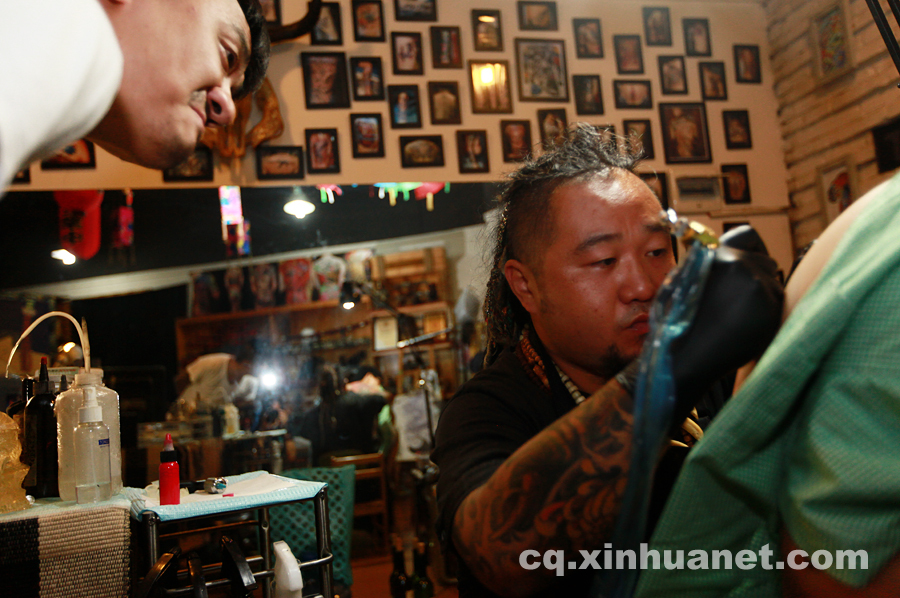 On July 21st, a costumer tattoos. (Xinhua News Agency/Peng Bo)