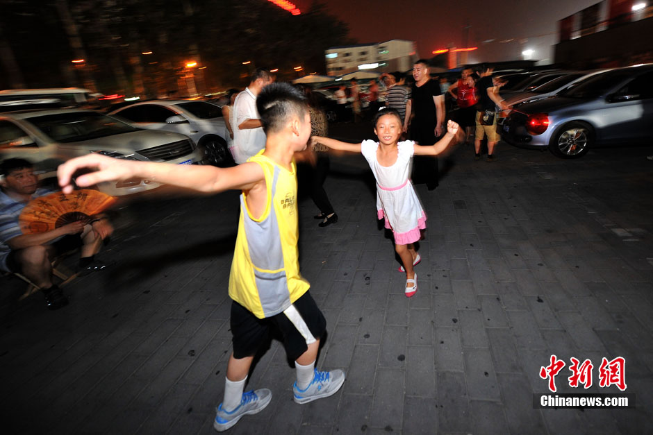 Two kids dance to the beat in the parking lot of Wukesong Stadium in Haidian District, Beijing. (Photo/Chinanews.com)