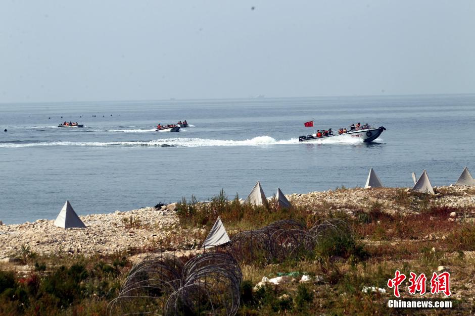 Nearly 6,000 troops of over 20 units from PLA Navy North Sea Fleet and Jinan Military Area Command conduct the "Joint-2014B" military drill in Bohai Bay from Sept. 25 to Sept. 27, 2014. (Chinanews.com/Qiu Chengliang)