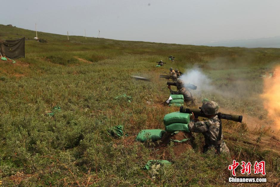 Nearly 6,000 troops of over 20 units from PLA Navy North Sea Fleet and Jinan Military Area Command conduct the "Joint-2014B" military drill in Bohai Bay from Sept. 25 to Sept. 27, 2014. (Chinanews.com/Qiu Chengliang)