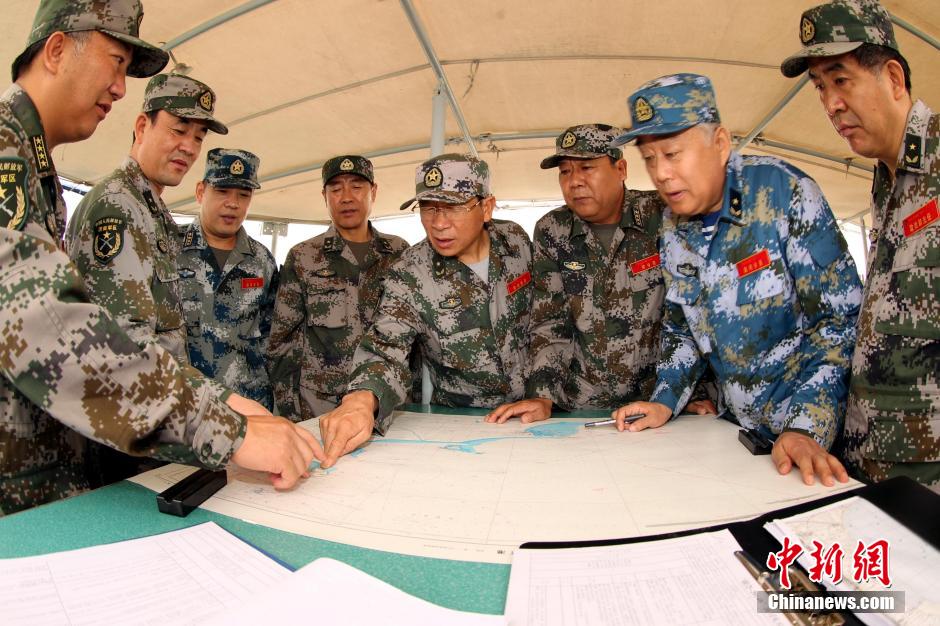 Nearly 6,000 troops of over 20 units from PLA Navy North Sea Fleet and Jinan Military Area Command conduct the "Joint-2014B" military drill in Bohai Bay from Sept. 25 to Sept. 27, 2014. (Chinanews.com/Qiu Chengliang)