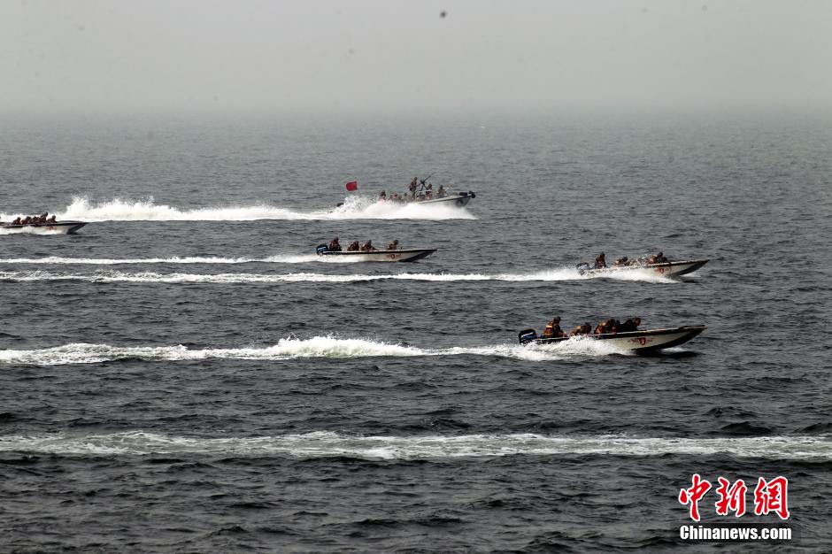 Nearly 6,000 troops of over 20 units from PLA Navy North Sea Fleet and Jinan Military Area Command conduct the "Joint-2014B" military drill in Bohai Bay from Sept. 25 to Sept. 27, 2014. (Chinanews.com/Qiu Chengliang)