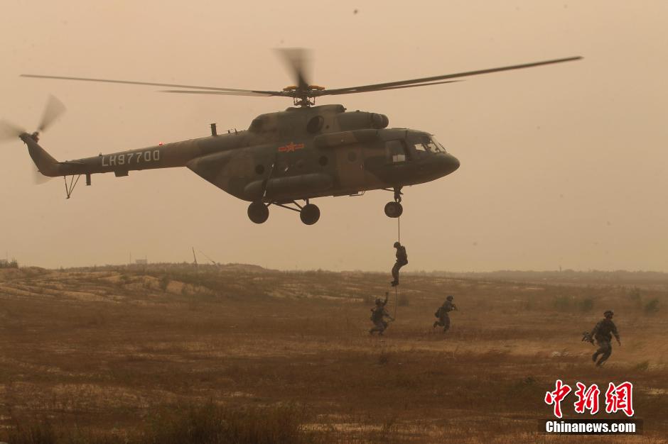 Nearly 6,000 troops of over 20 units from PLA Navy North Sea Fleet and Jinan Military Area Command conduct the "Joint-2014B" military drill in Bohai Bay from Sept. 25 to Sept. 27, 2014. (Chinanews.com/Qiu Chengliang)