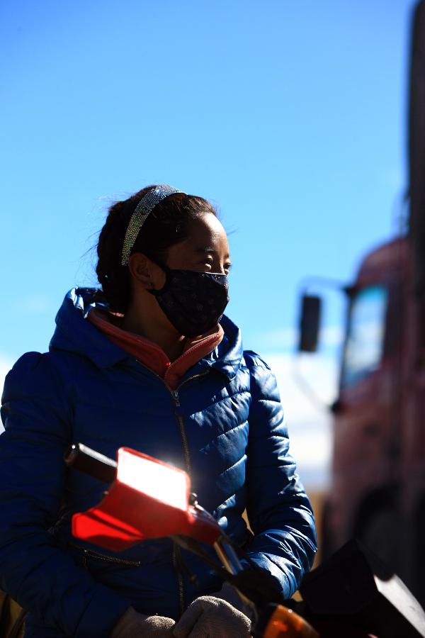 | Photo taken on Sept. 21, 2014 shows Sonam Qoigyi watching the Qinghai-Tibet highway in southwest China's Tibet Autonomous Region. Sonam Qoigyi, 28, accompanies her fellow-villagers on a journey of pilgrimage to Lhasa. The year of 2014 marks the 60th anniversary of the opening of the Qinghai-Tibet highway. The highway, linking Xining, capital city of Qinghai province, and Lhasa, capital of the Tibet Autonomous Region, is a lifeline for Qinghai-Tibet Plateau. It boosts economic growth of regions along the road and makes lots of people's dreams come true. (Xinhua/Guo Qiuda) |