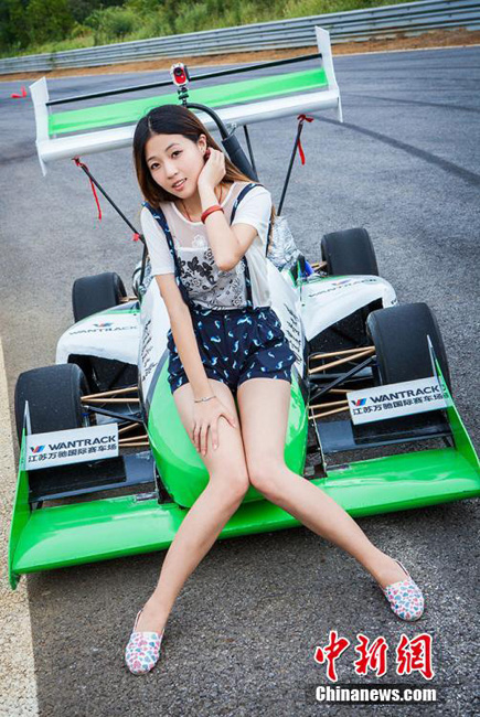 A new car named "Wantrack", which will participate in 2014 Formula Student China is shown to public at Nanjing Agricultural University, east China's Jiangsu province on Sept. 29, 2014. The posters of the new car were released at the same time. "Ningyuan Team" established in September 2010 at Nanjing Agricultural University has shown good performance for three consecutive years.