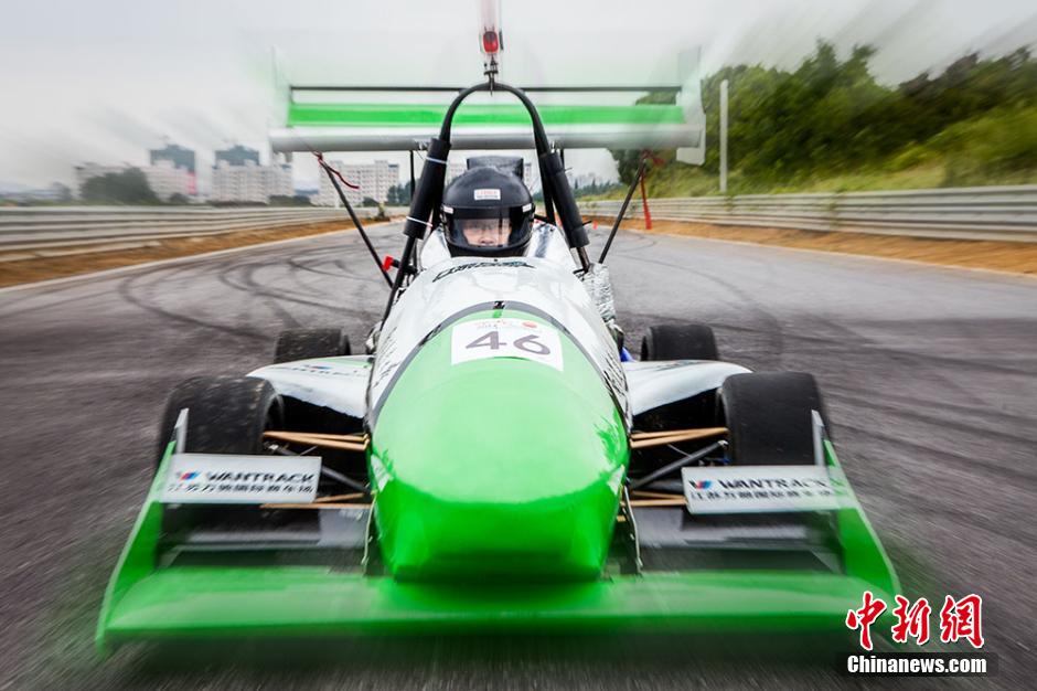 A new car named "Wantrack", which will participate in 2014 Formula Student China is shown to public at Nanjing Agricultural University, east China's Jiangsu province on Sept. 29, 2014. The posters of the new car were released at the same time. "Ningyuan Team" established in September 2010 at Nanjing Agricultural University has shown good performance for three consecutive years.