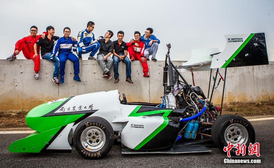 A new car named "Wantrack", which will participate in 2014 Formula Student China is shown to public at Nanjing Agricultural University, east China's Jiangsu province on Sept. 29, 2014. The posters of the new car were released at the same time. "Ningyuan Team" established in September 2010 at Nanjing Agricultural University has shown good performance for three consecutive years.