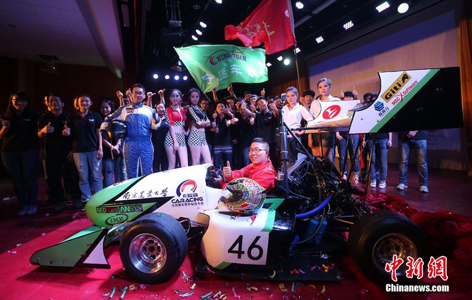 A new car named "Wantrack", which will participate in 2014 Formula Student China is shown to public at Nanjing Agricultural University, east China's Jiangsu province on Sept. 29, 2014. The posters of the new car were released at the same time. "Ningyuan Team" established in September 2010 at Nanjing Agricultural University has shown good performance for three consecutive years.