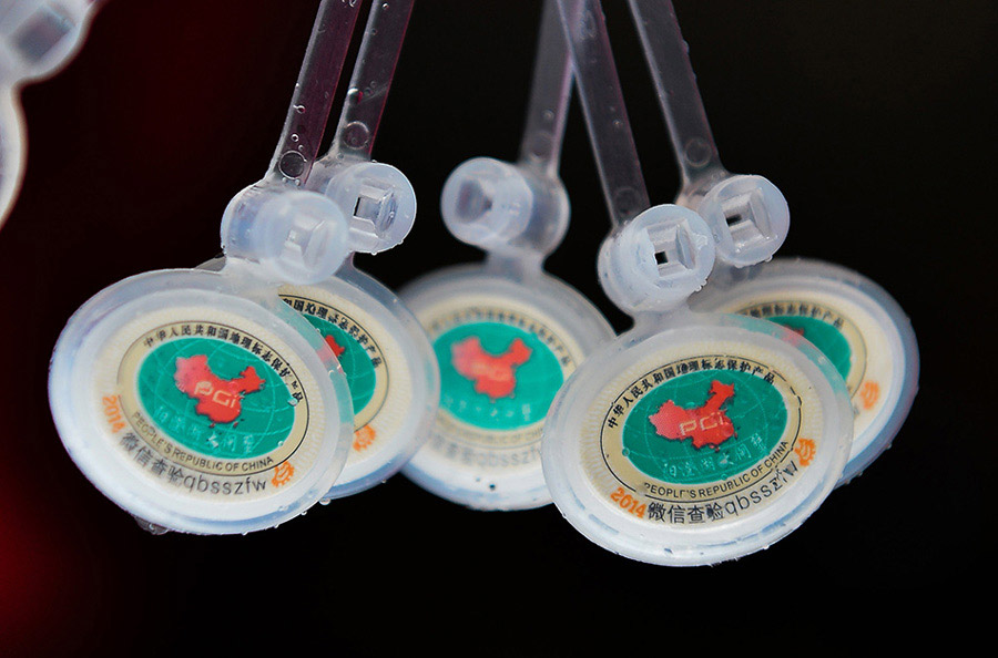 The latest anti-counterfeit label for Yangcheng Lake crabs is released. [Photo/Xinhua]