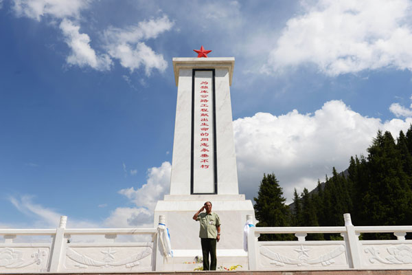 | Chen salutes his fallen comrades at the cemetery. Photo by HENG GUOLIANG |