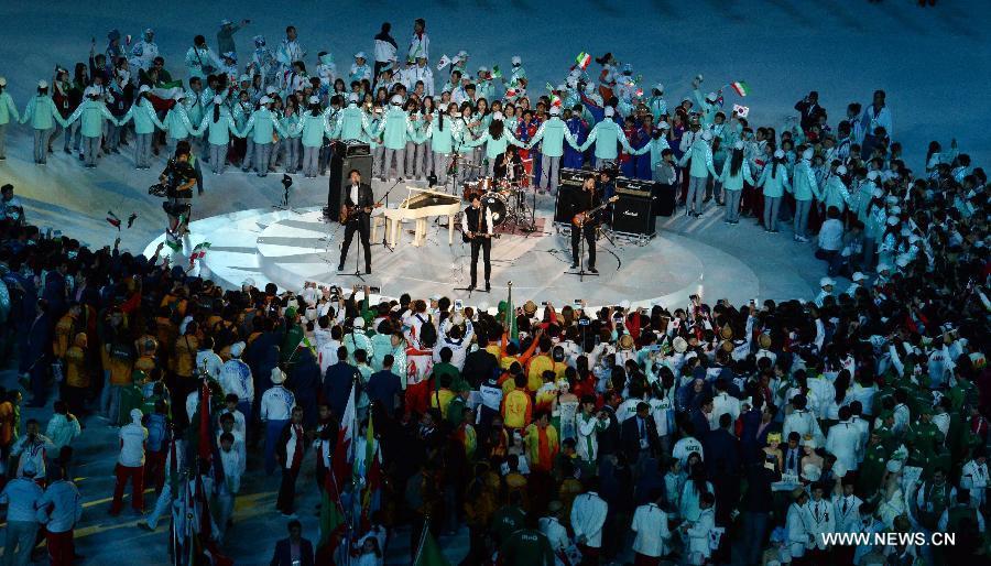 South Korean pop group CNBLUE perform during the closing ceremony of the 17th Asian Games at the Incheon Asiad Main Stadium in Incheon, South Korea, Oct. 4, 2014. (Xinhua/Ma Ping)