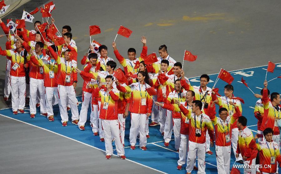 Chinese athletes parade during the closing ceremony of the 17th Asian Games at the Incheon Asiad Main Stadium in Incheon, South Korea, Oct. 4, 2014. (Xinhua/Zheng Huansong)