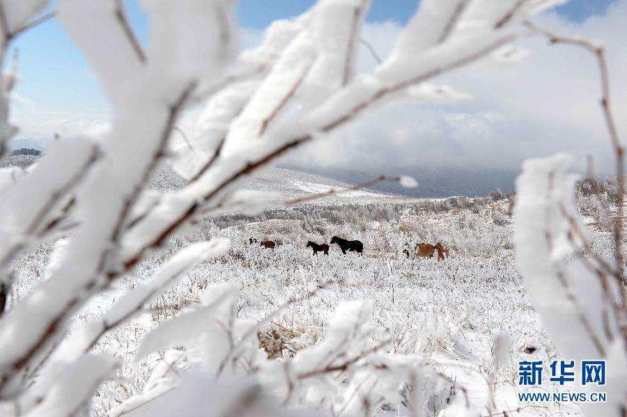 Photo taken on Oct. 5, 2014 shows the beautiful rime scenery at Hexigten Global Geopark of China, N China's Inner Mongolia. (Xinhua photo)