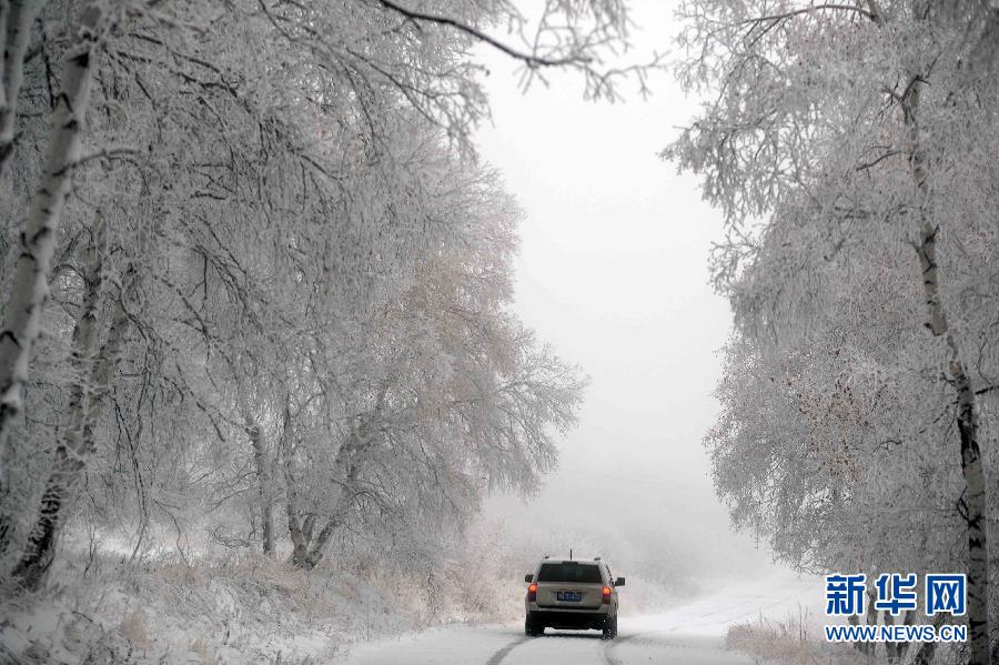 | Photo taken on Oct. 5, 2014 shows the beautiful rime scenery at Hexigten Global Geopark of China, N China's Inner Mongolia. (Xinhua photo) |