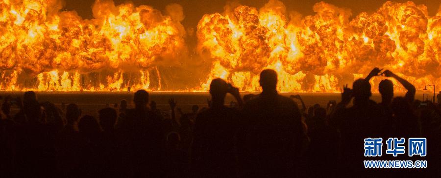 The "Art of Fire" showcases choreographed during the Miramar Air Show in San Diego, California, the United States, on Oct. 4, 2014. The Marines demonstrate the new F-35B Joint Strike Fighter at this year's Miramar Air Show. The U.S. Navy "Blue Angeles" perform during the Miramar Air Show. (Xinhua/Yang Lei)