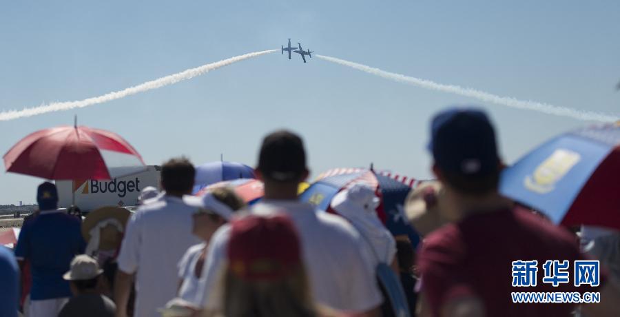 | Spectators watch the aerobatic flight during the Miramar Air Show in San Diego, California, the United States, on Oct. 4, 2014. The Marines demonstrate the new F-35B Joint Strike Fighter at this year's Miramar Air Show. The U.S. Navy "Blue Angeles" perform during the Miramar Air Show. (Xinhua/Yang Lei) |