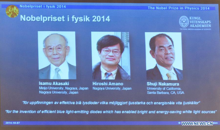 Three scientists share 2014 Nobel Prize in Physics