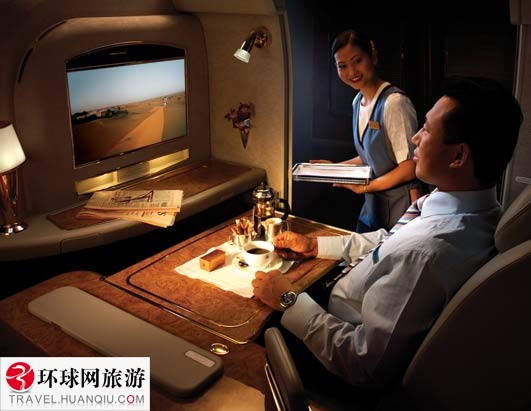 There are USB sockets on the Emirates Airlines; passengers can connect televisions with phones, cameras, computers, to watch pictures or videos on the big television screen.