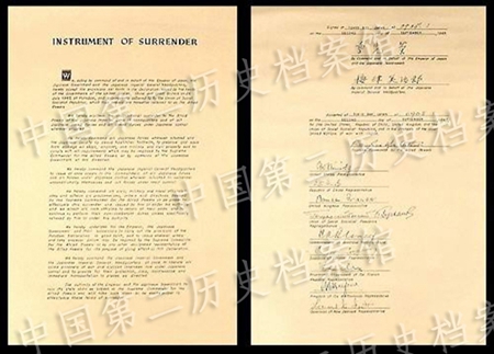 | The instrument of surrender on Sept. 2, 1945. (Photo/Second Historical Archives of China) |