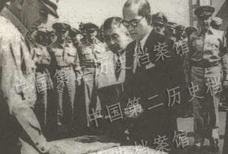 | On behalf of Emperor Hirohito and the Japanese government, Mamoru Shigemitsu attended the surrender ceremony on Sept. 2, 1945. (Photo/Second Historical Archives of China) |
