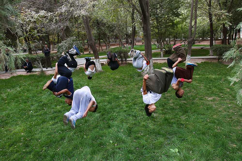 Members of DSB practices backward somersault on Sept. 27, 2014. (Xinhua/Wu Zhuang)