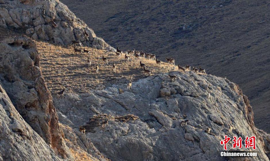 Rows of swans fly over the mountain area of Xinjiang. Swans began to fly away from Xinjiang as it gets colder in October. (Chinanews.com/Hu Re)