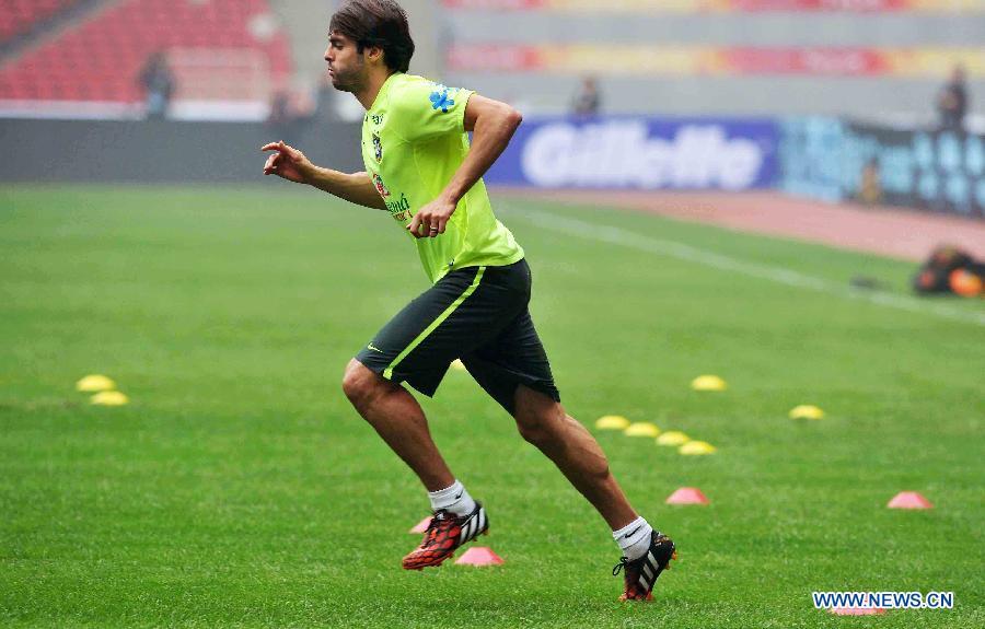| Brazil's Kaka attends a training session one day before a friendly football match between the Brazilian and Argentinian national teams in Beijing, capital of China, Oct 10, 2014. (Xinhua/Gong Lei) |