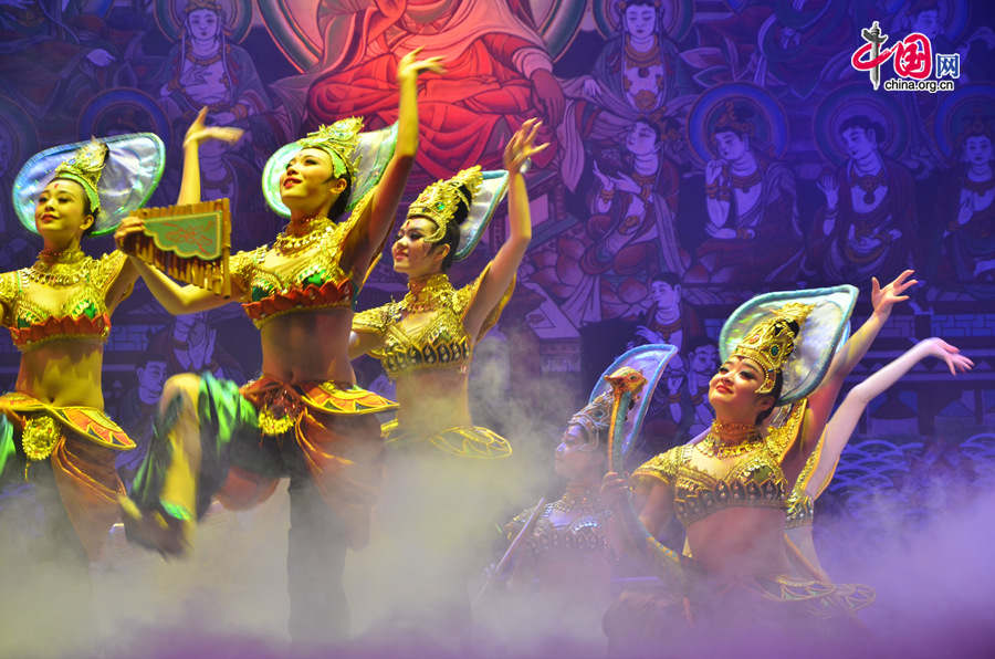 Artists perform the dance drama "Silk Road" in Lanzhou on Thursday, Oct. 9, 2014, as part of the activities marking the 3rd International Culture Industry Conference, which is being held in the city. [Photo by Su Yadong / China.org.cn]