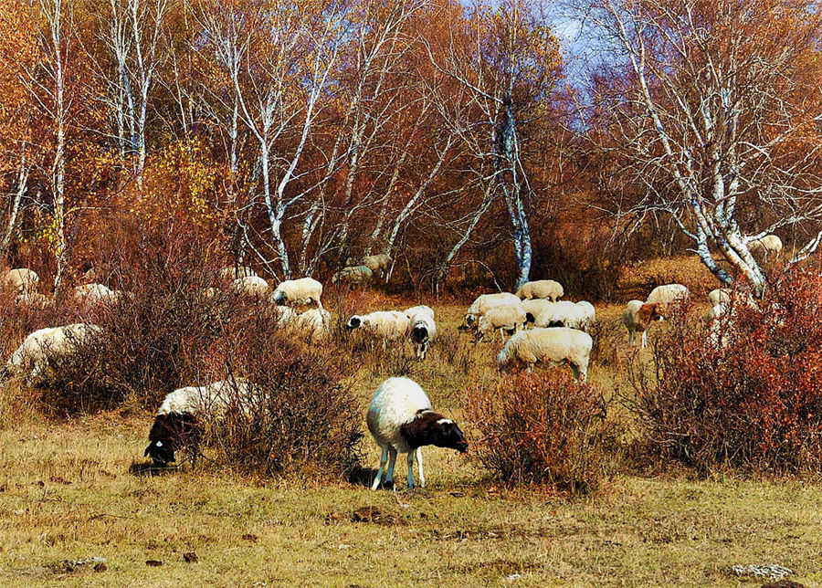 | All the vivid colors of autumn are clearly on display as local fauna amble about the grassland. [Photo by Gui Peng/ Provided to chinadaily.com.cn] |