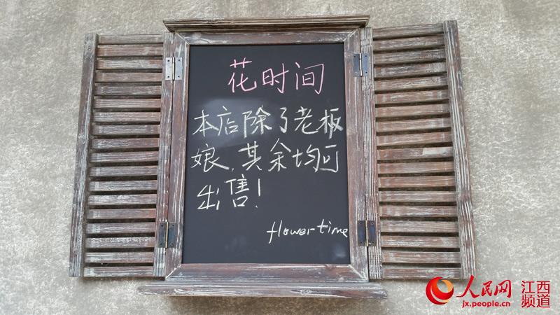 Qi Liang's board reads "Except for the landlady, everything is for sale." (Photo/People's Daily Online)