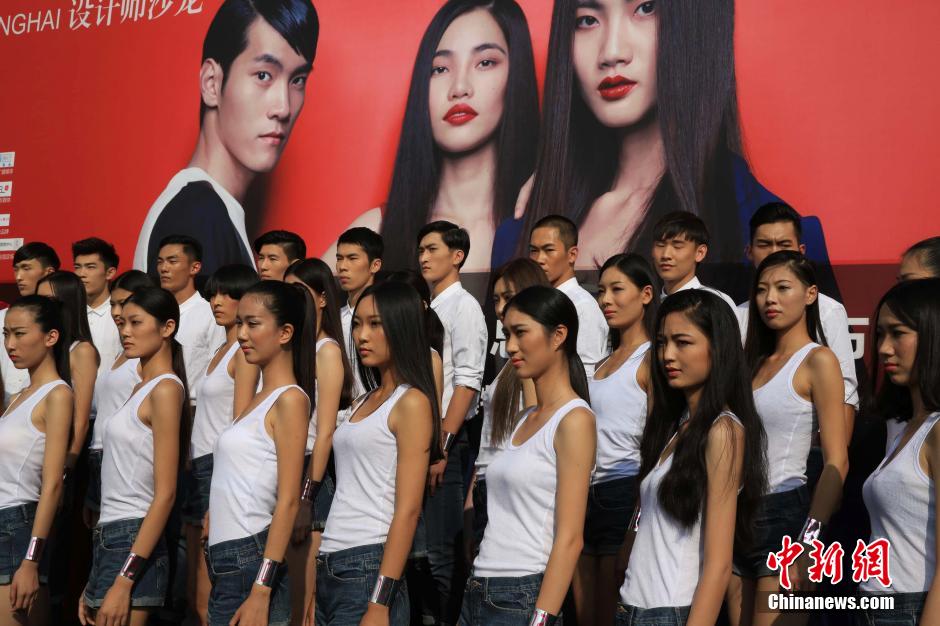 On October 10, 2014, 42 finalists of the Shanghai International Model Contest make their debut at Shanghai Designer Salon. Some of them are selected by designers to attend the 2015 Spring/Summer Shanghai Fashion Week. The final will be held on October 24, 2014. (Chinanews/Pan Suofei)