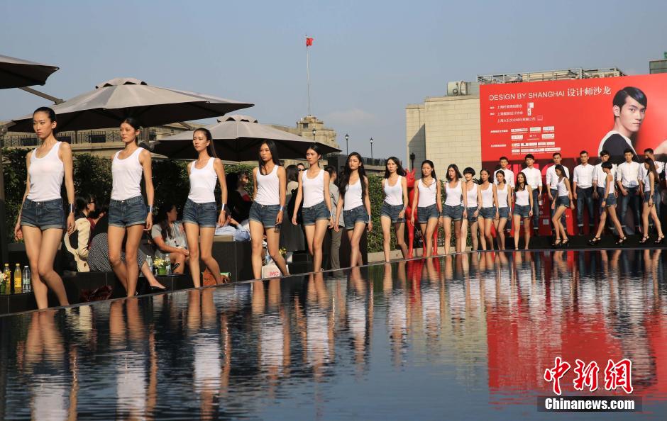 On October 10, 2014, 42 finalists of the Shanghai International Model Contest make their debut at Shanghai Designer Salon. Some of them are selected by designers to attend the 2015 Spring/Summer Shanghai Fashion Week. The final will be held on October 24, 2014. (Chinanews/Pan Suofei)