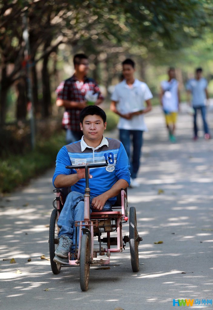 Yu Chongle, 21, from Zhongshan county, has a pleasant personality, and everyone calls him Xiaole. When he was four years old, a high fever resulted in a deformity. “I can only stand up for 10 minutes at most," he says, "and I can't walk normally.” When Xiaole was in second grade at primary school, his parents went to the south to make a living helping others grow vegetables, so he became a 'left-behind' child living with his grandparents。 (Photo/Haiwainet)