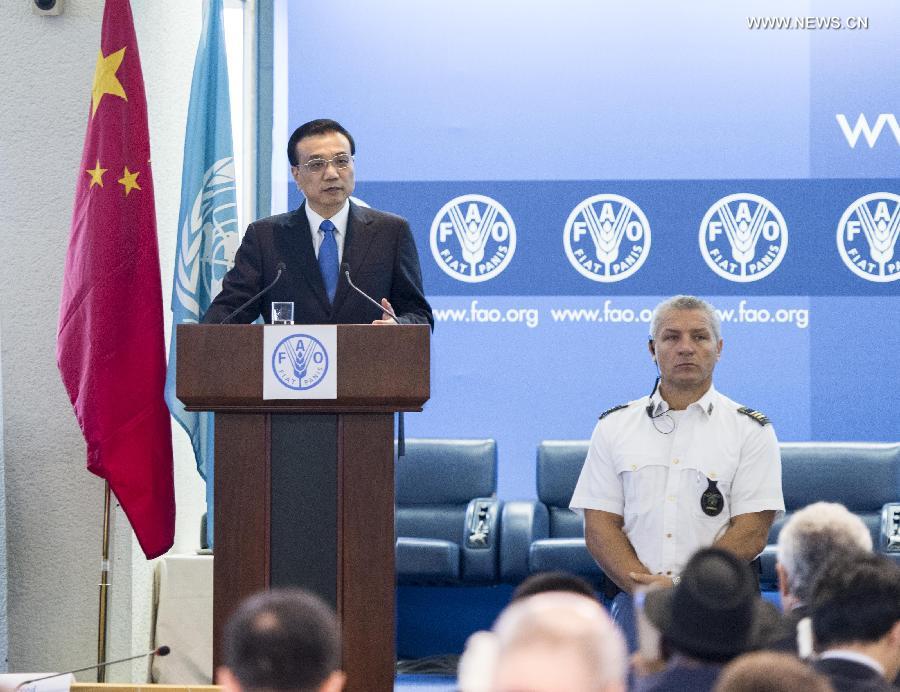 ROME, Oct. 15 -- Visiting Chinese Premier Li Keqiang said here Wednesday that his country will donate 50 million U.S. dollars in the next five years to the UN Food and Agriculture Organization (FAO).
