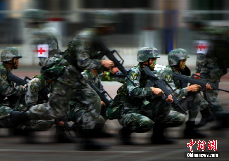 Students at Norman Bethune Non-Commissioned Officer Medical School perform medical aids and military music for attendees of China-Canada International Summit in commemoration of the 75th anniversary of the death of Norman Bethune in Shijiazhuang, north China's Hebei province on Oct. 12, 2014. (CNS/Song Jihe)