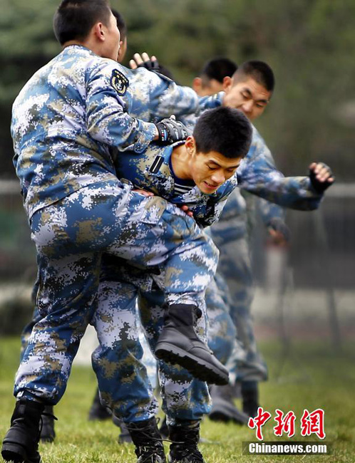 Students at Norman Bethune Non-Commissioned Officer Medical School perform medical aids and military music for attendees of China-Canada International Summit in commemoration of the 75th anniversary of the death of Norman Bethune in Shijiazhuang, north China's Hebei province on Oct. 12, 2014. (CNS/Song Jihe)