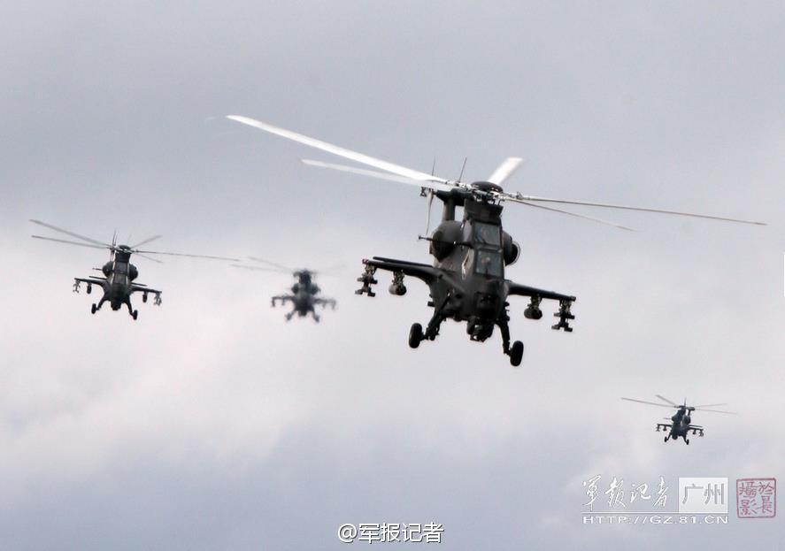 An army aviation brigade of Guangzhou Military Region conducts a drill for the Z-10 attack helicopter formation on Oct. 13, 2014. (Photo source: Microblog of a PLA Daily reporter)