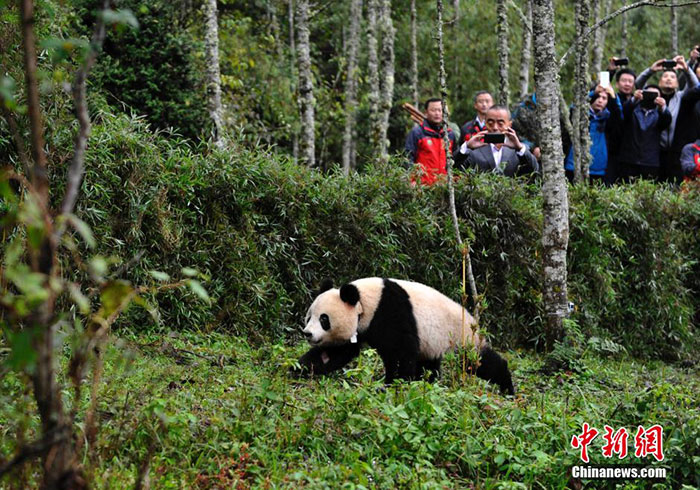 Xuexue is released into the wild. (CBS/ An Yuan)
