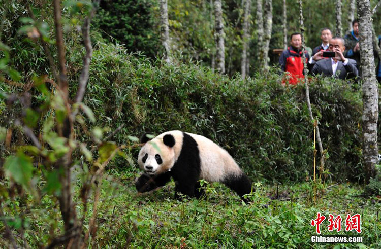 Xuexue is released into the wild. (CBS/ An Yuan)