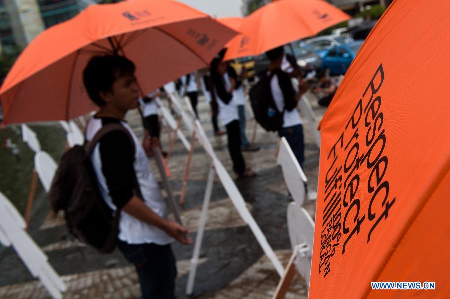 People attend a rally marking the World Food Day in Jakarta, Indonesia, Oct. 16, 2014. (Xinhua/Veri Sanovri)
